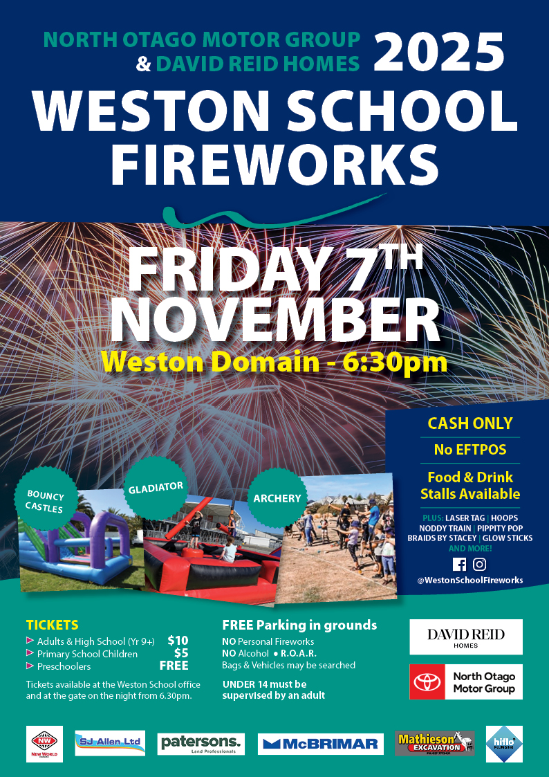 North Otago Motor Group & David Reid Homes 2025 Weston School Fireworks