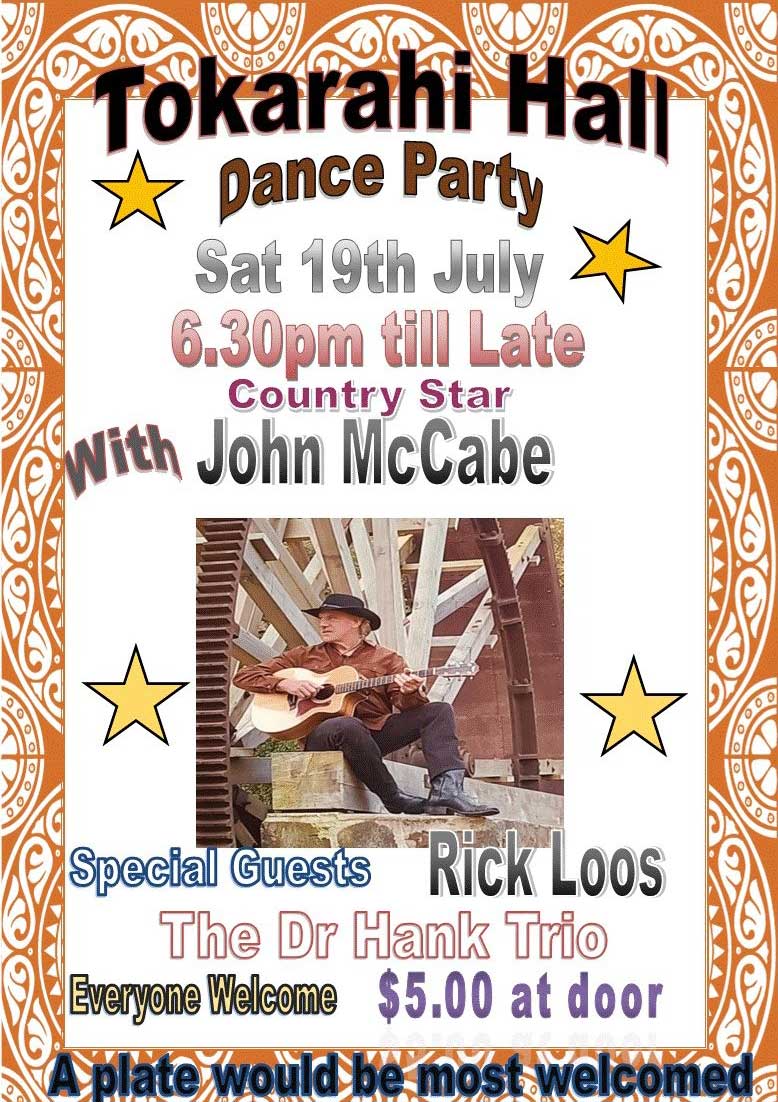 Please join us this Saturday night (July 19) at the Tokarahi Hall for a wonderful community dance and get-together. Music from Nashville recording artist and singer/songwriter John McCabe, with special gurests Rick Loos and the Dr Hank Trio. Music and dancing all night.
