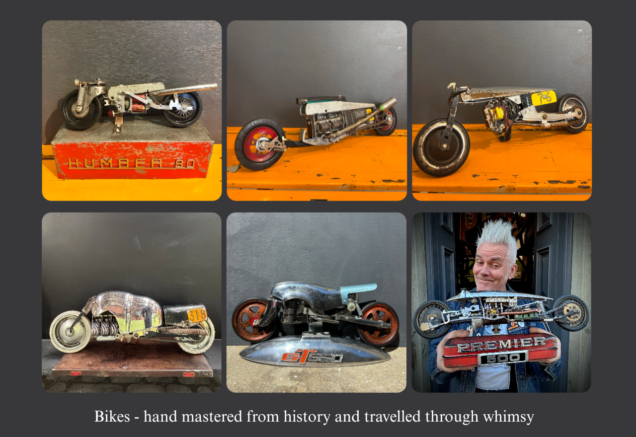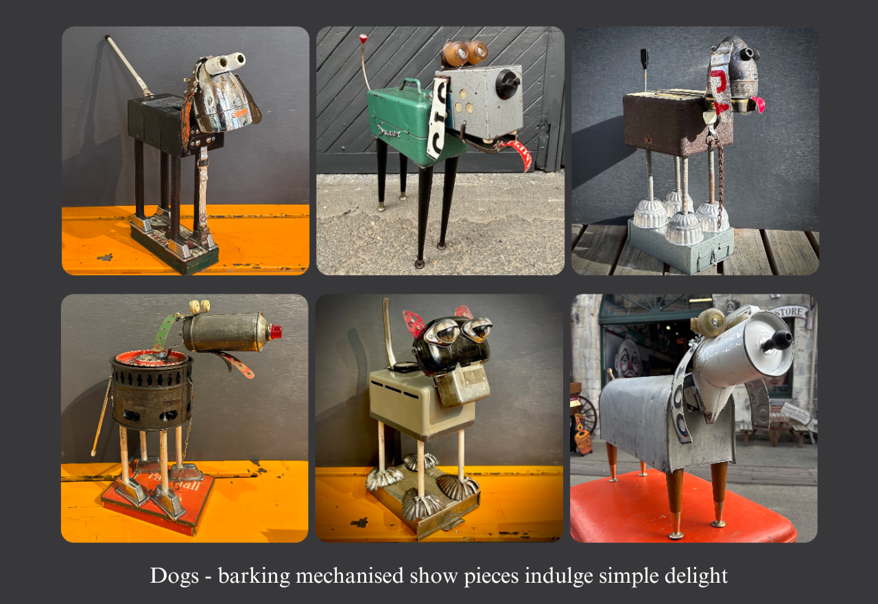 Most of his quirky sculptures contain original pieces from the 50s and 60s - delighting in their detail and surprising as recognition of individual components dawn.