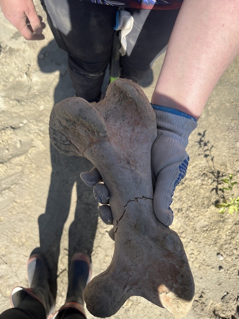 The moa bone discovered during a Topflite tree planting day. Photo: Supplied