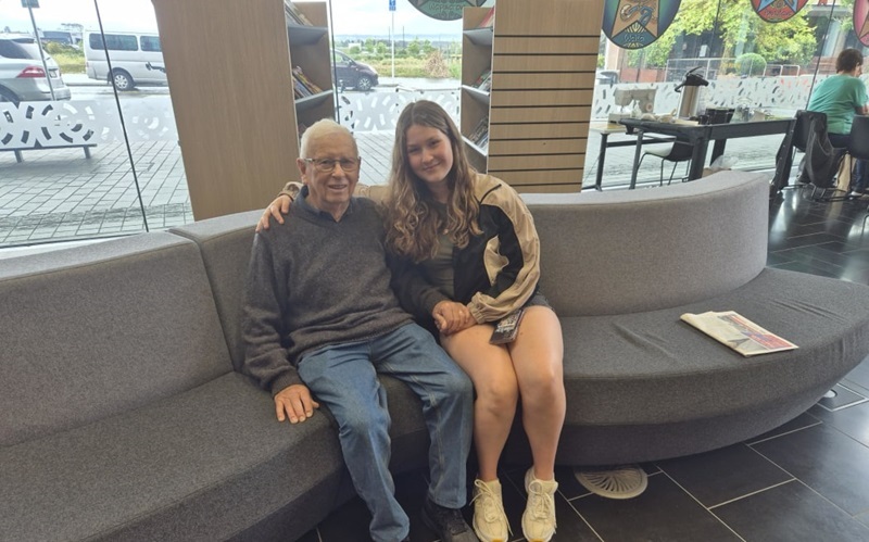 Peter Paltridge attending a senior's social group at Te Manawa with his granddaughter Erica Paltridge. Photo: RNZ / Jessica Hopkins.