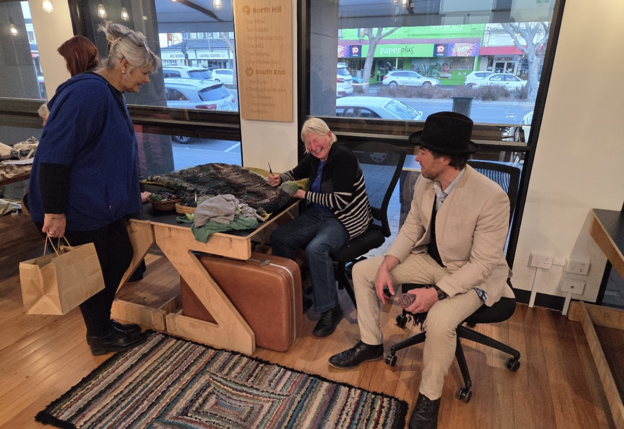 Meantime, Alana O Connor demonstrated darning, Lisa Potaka Ross showcased a huge array of relevant library books with the technology to lend them to cardholders then and there.