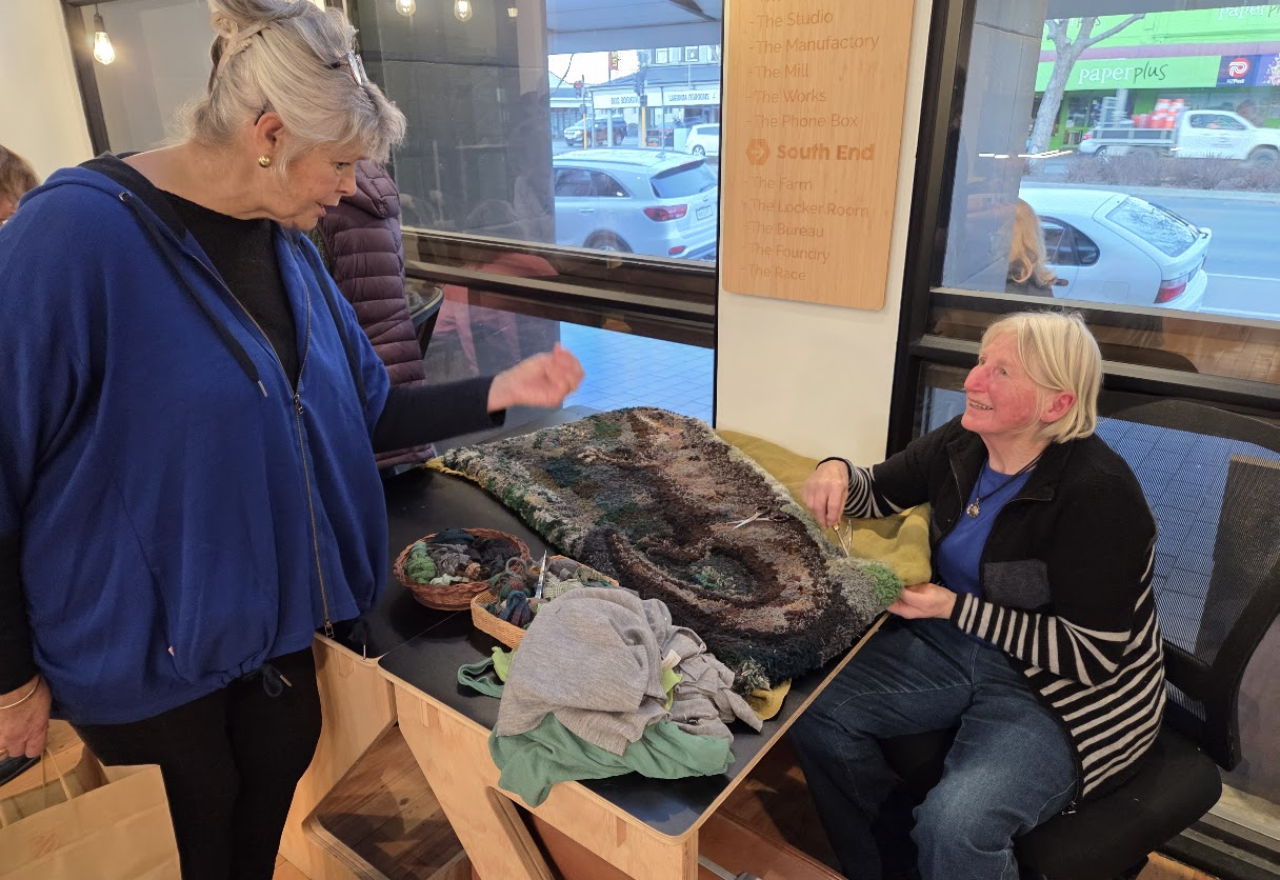 Roz Armstrong enjoying a laugh while showcasing rag rug making. Photo: Alex Regtien.