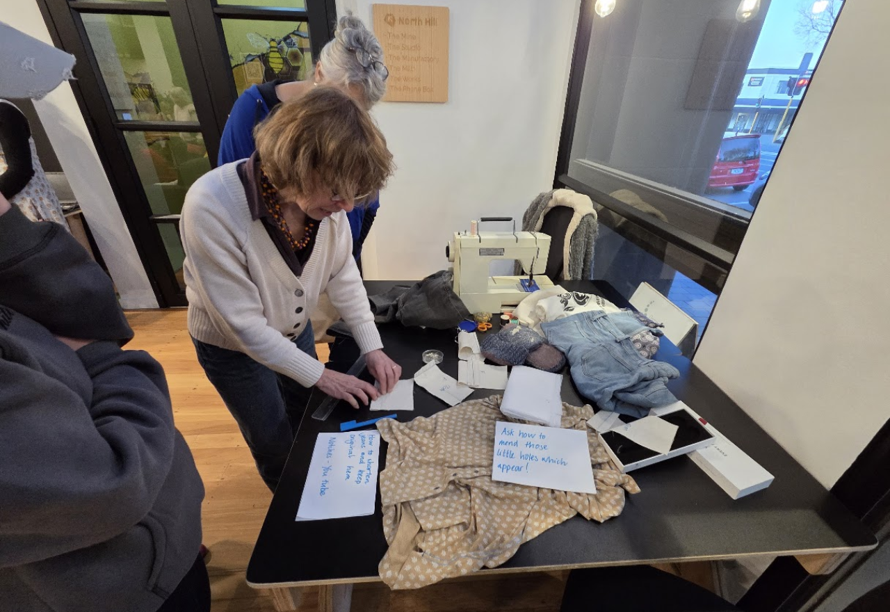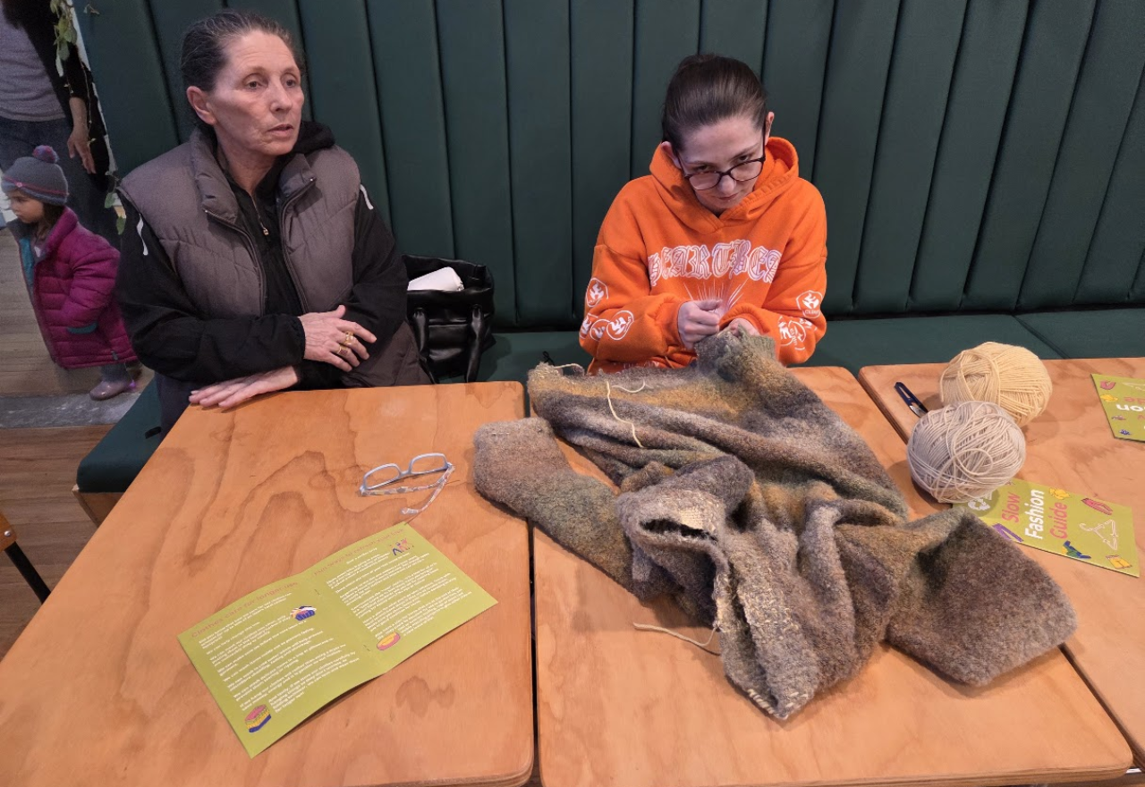 Sandra Winder demonstrated ways to alter and mend clothes, sharing her top tips with the onlookers while Roz Armstrong showed how to make rag rugs from old fabric instead of sending it to the landfill.