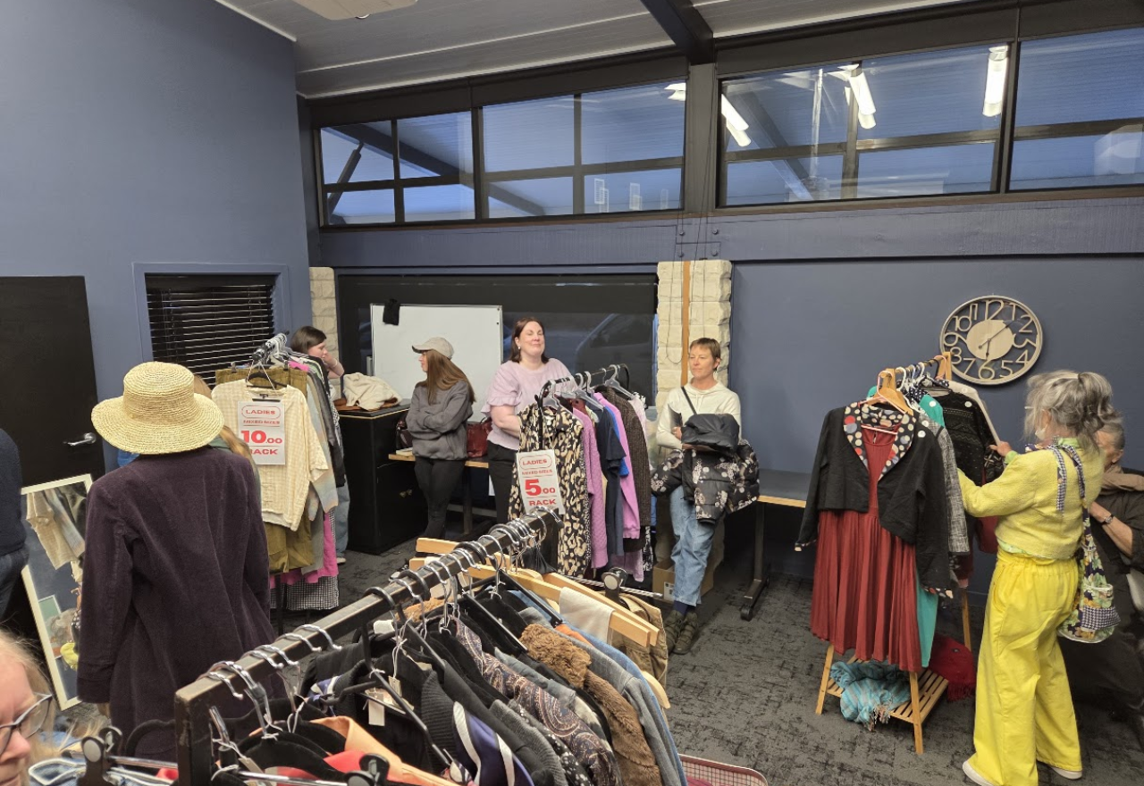 Local second-hand and vintage clothing sellers Zara Murphy, Rachel Fastier, Heather Machin and Jeannie Fletcher had stalls, while Annie Beattie sold jewellery on behalf of Justice for All.