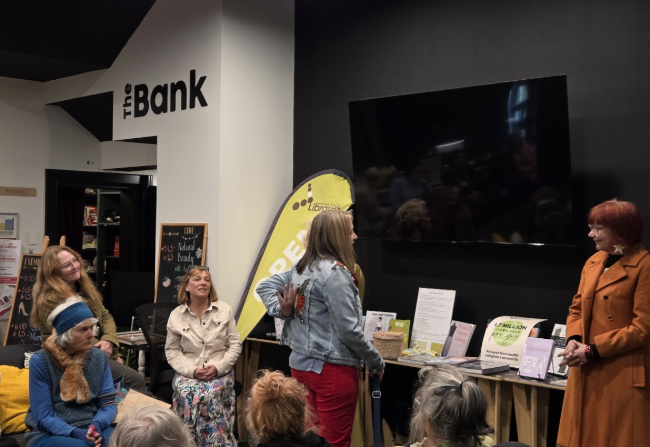 Lisa Potaka Ross talking about the many books on sustainable practices available from Waitaki District Libraries. Photo: Alex Regtien.