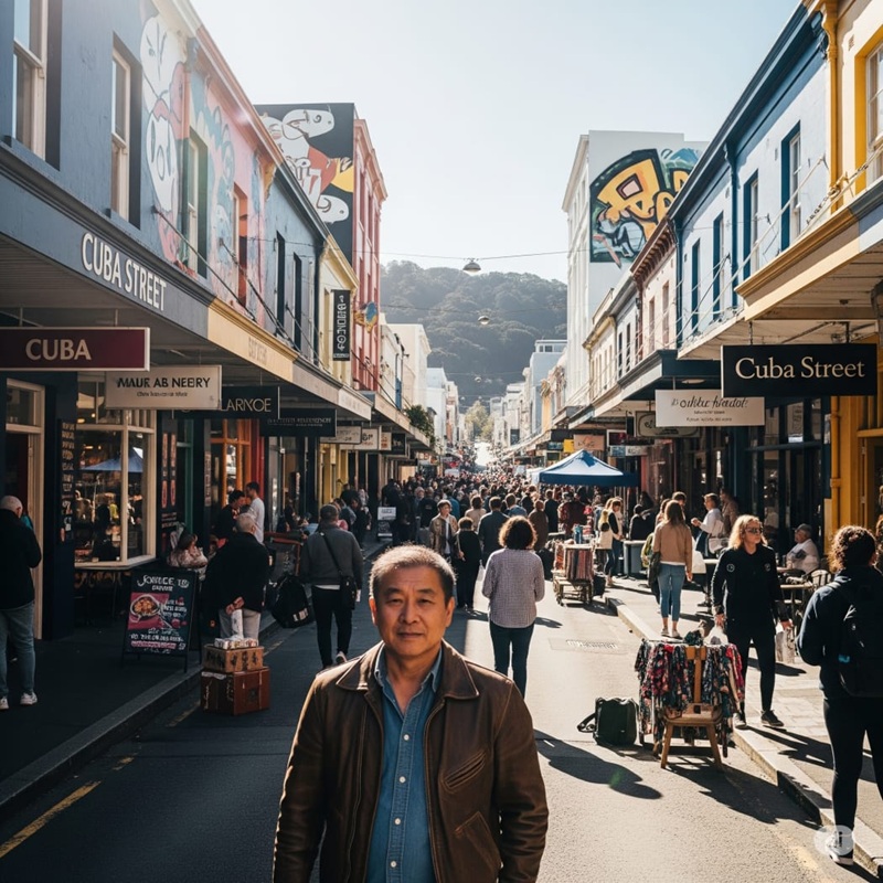 Google's Gemini AI was asked to generate a view of Wellington's Cuba Street, and this is what it came up with. While on first glance it may be all right, look closer at the signs in the background. Photo: Made with Google AI