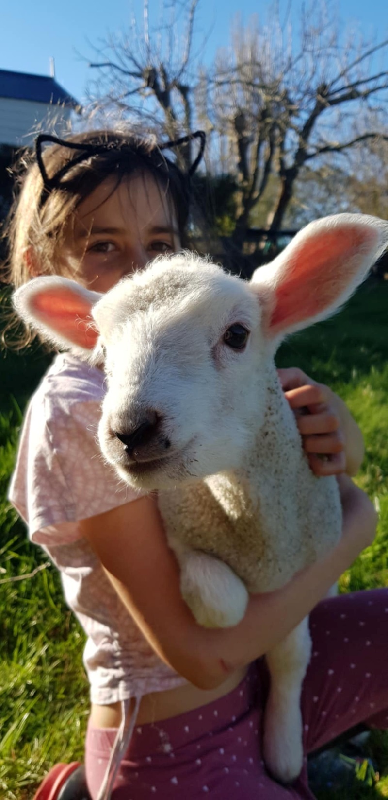 A pupil cuddles a visiting lamb. Photo: Supplied