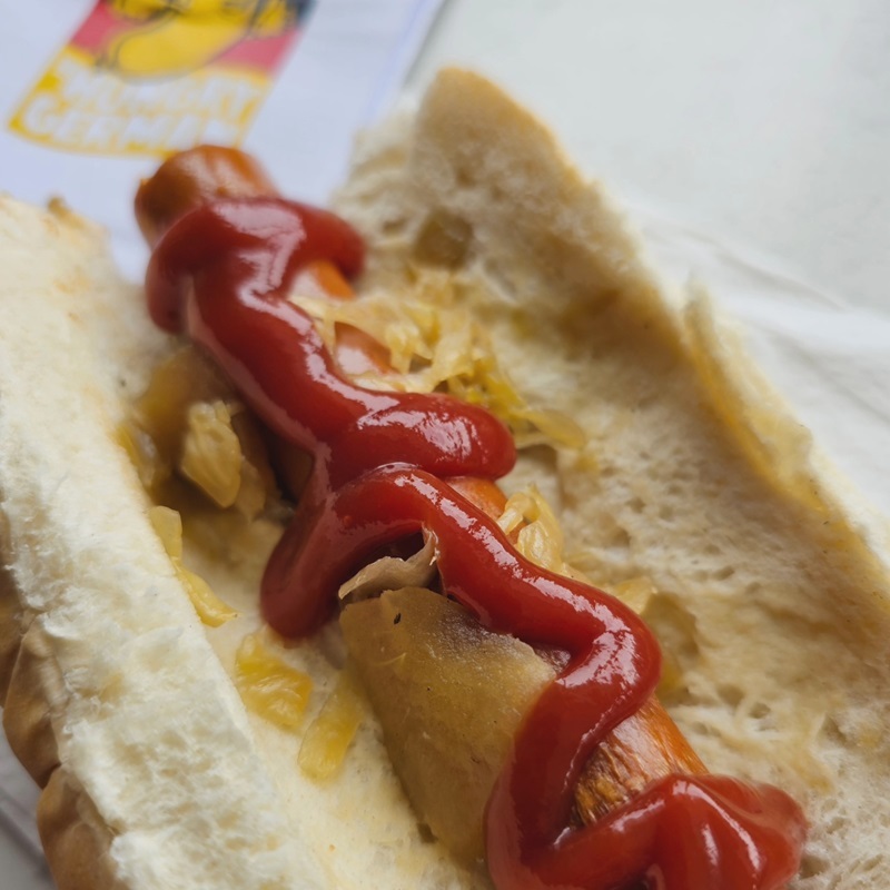 A Nuremburg sausage with sauerkraut and tomato sauce. Photo: Sarah Rowland