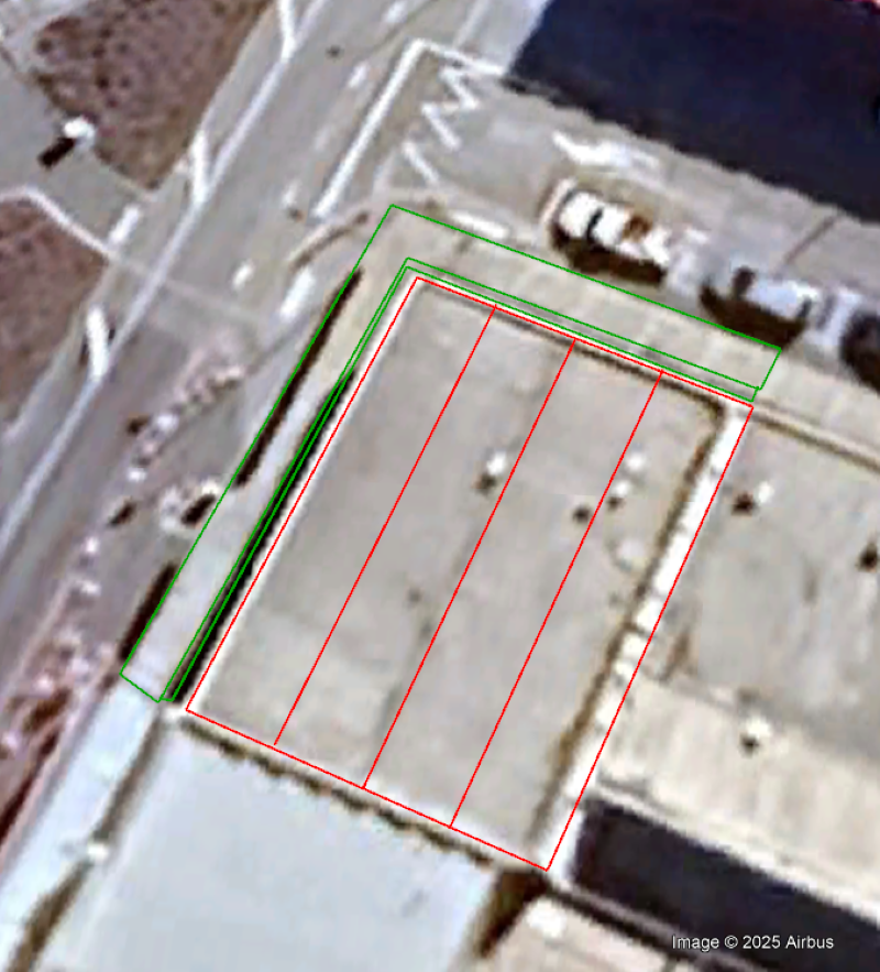 The red and green lines indicate where wires will be installed, to deter seagulls from the roof. Photo: Supplied