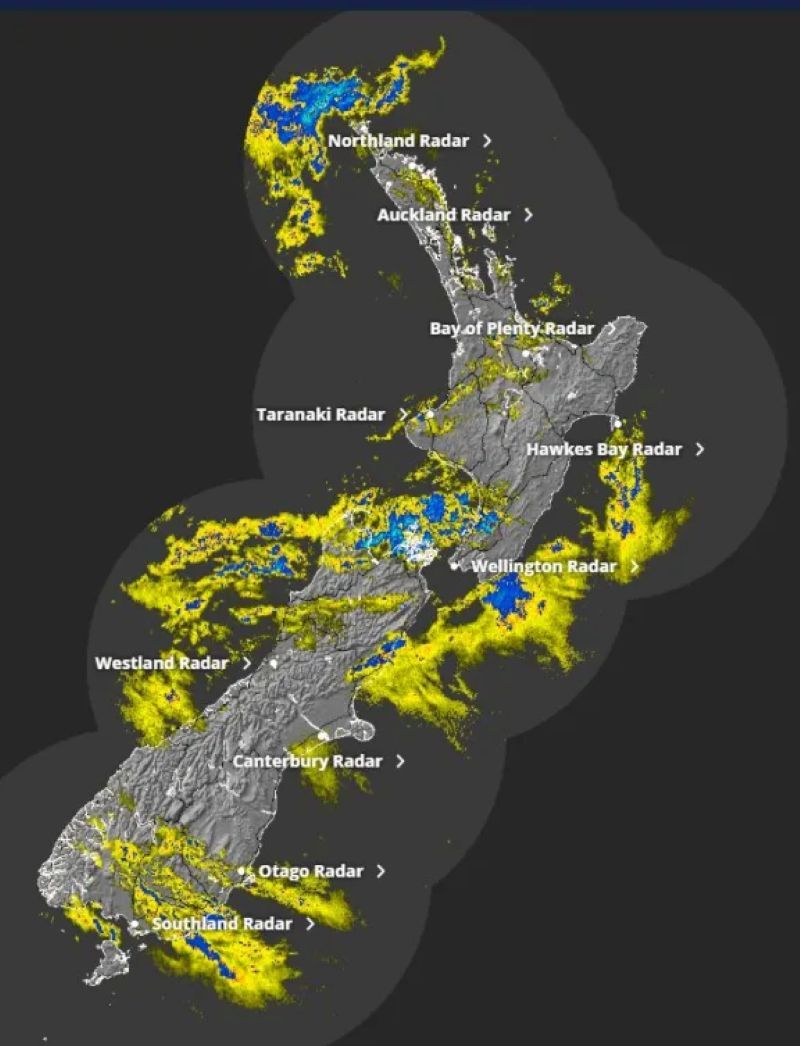 Today's rain radar map Photo: Screenshot / MetService via RNZ