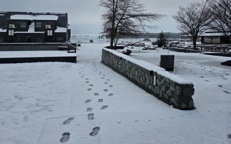 Lake Tekapo after overnight snow dump. Photo: Supplied / Tanja Clauberg via RNZ